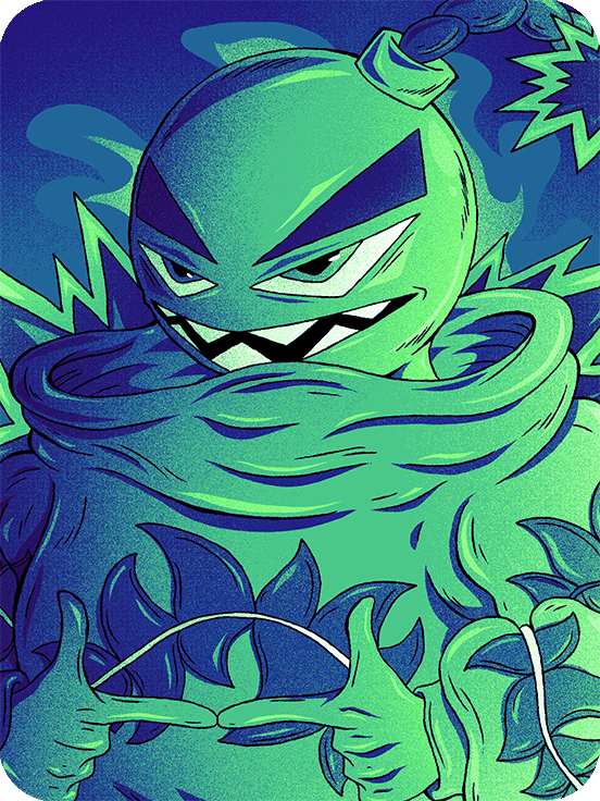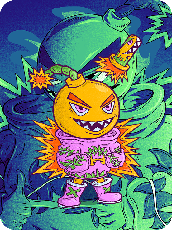 Using the outermost trait layer in a Reddit avatar, the right-hand accessory trait, I discovered a way to turn the Snoo-style design into something of my own, by recreating the design in my own art style while blending perfectly into the background card. Redditors buy this by receiving personal artwork from me as well as a Reddit avatar they can play around with in the avatar builder.